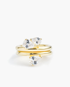 Our ring with two pear-shaped cubic zirconia stones. Perfect for stacking with the Sopra Pera Ring or worn alone for a subtle statement.