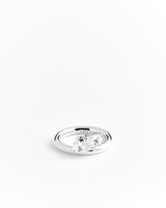 A ring with a pear-shaped cubic zirconia stones. Perfect for stacking with the Sopra Doppio Pera Ring or worn alone for a subtle statement.