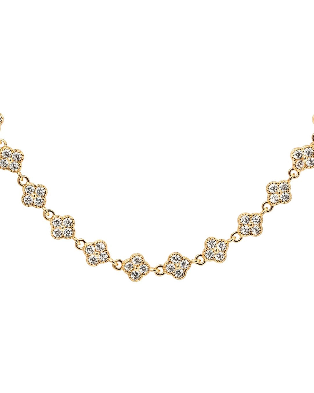 Eleganta berlocker och glittrande kristaller – vad mer kan man önska sig? Vackert Blomsterhalsband finns i både 18 karat guldplätering och sterlingsilver. Halsbandet har glänsande kristaller i vit kubisk zirkonia och garanteras bli en ny favorit i din smyckessamling. Ta din look till nästa nivå – eller ge bort halsbandet som en fin present till någon du bryr dig om. Halsbandet är 41 cm långt och berlocken är 5 mm bred.