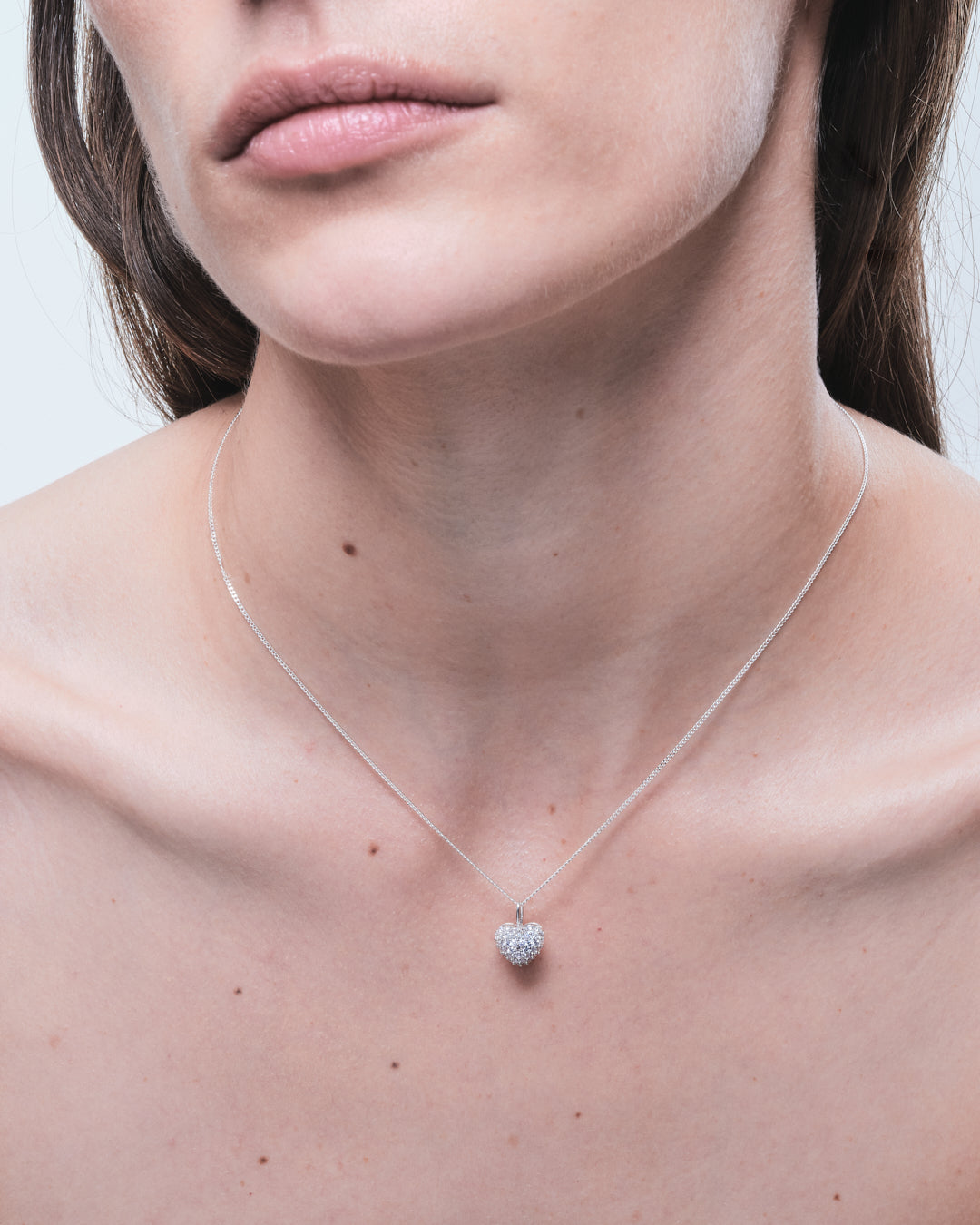 A heart-shaped charm with sparkling cubic zirconia stones. Perfect worn alone or combined with other charms. Fits our Thin Chain, is sold without chain.