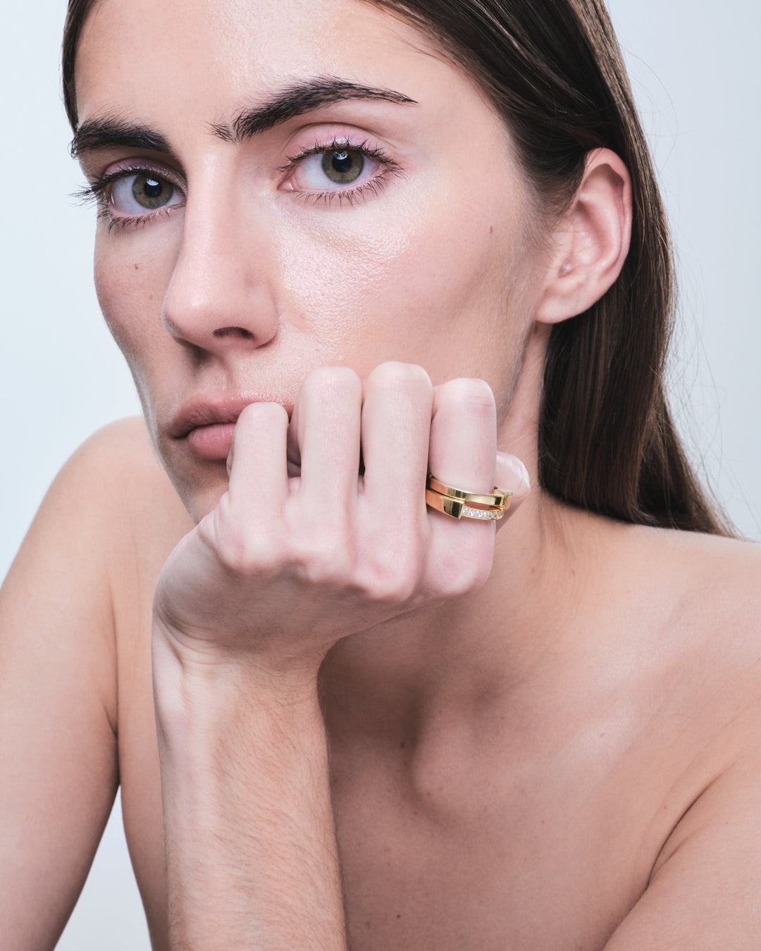 Made from 100% recycled brass and available in rhodium plating or 18k gold plating, combining durability with a refined, contemporary finish.