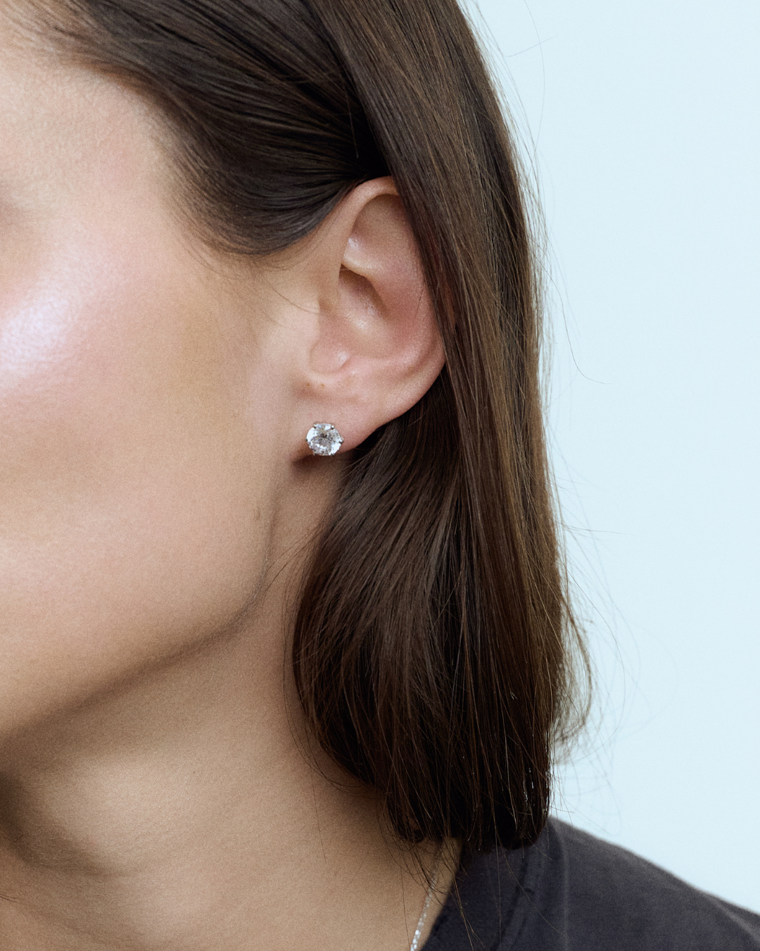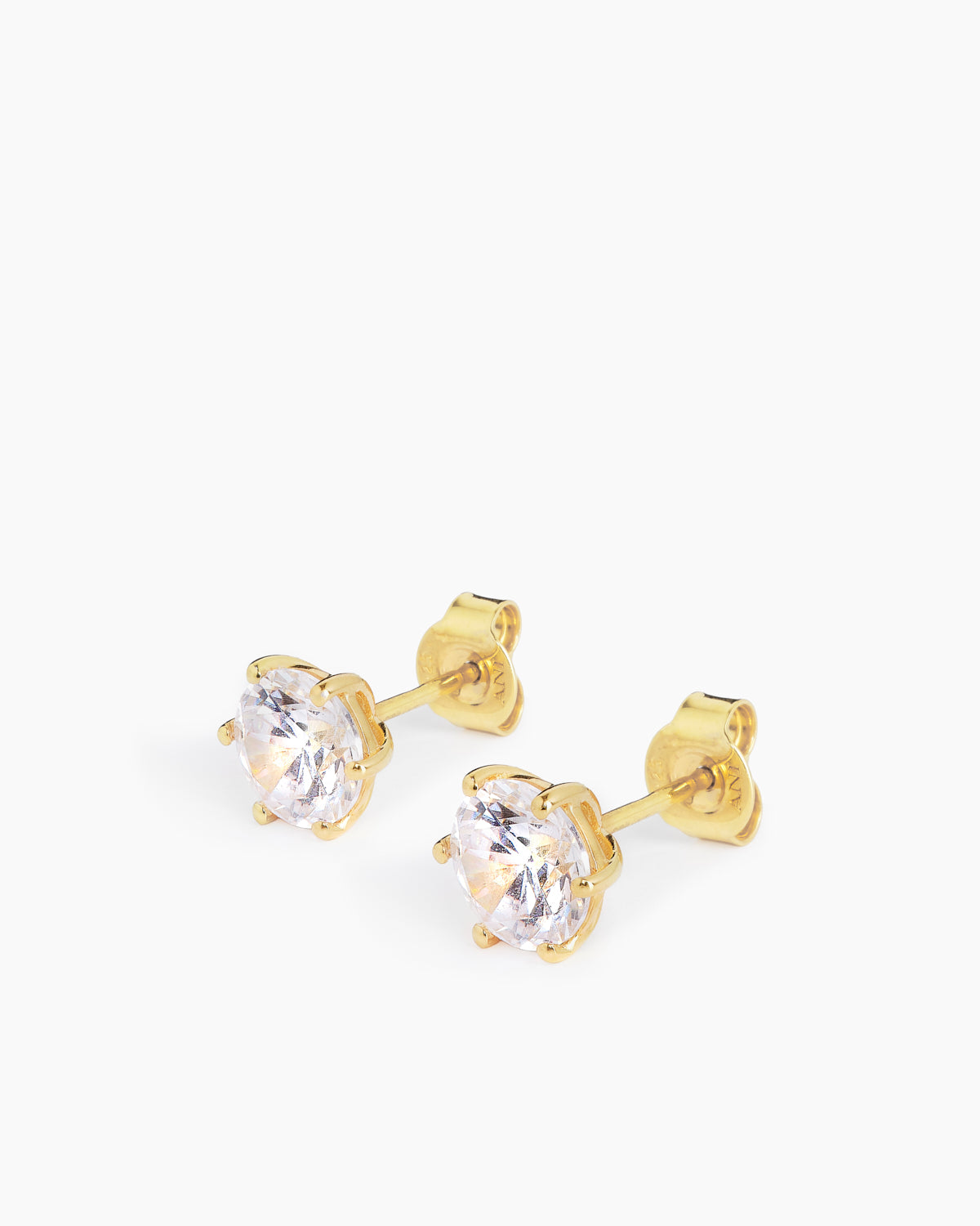 A classic pair of studs set with a sparkling cubic zirconia stone in 7 mm, crafted in 925 sterling silver. With your choice of rhodium plating or 14k gold plating, they are perfect to wear alone for a subtle shine or stacked with other earrings for a layered, modern look.
